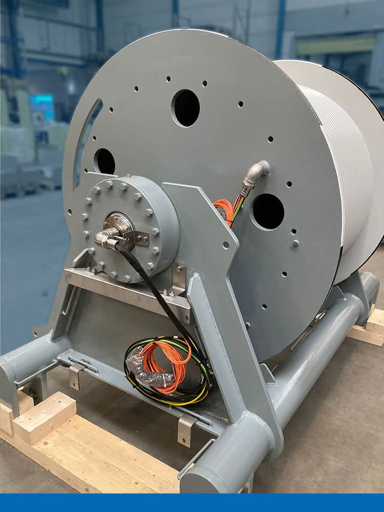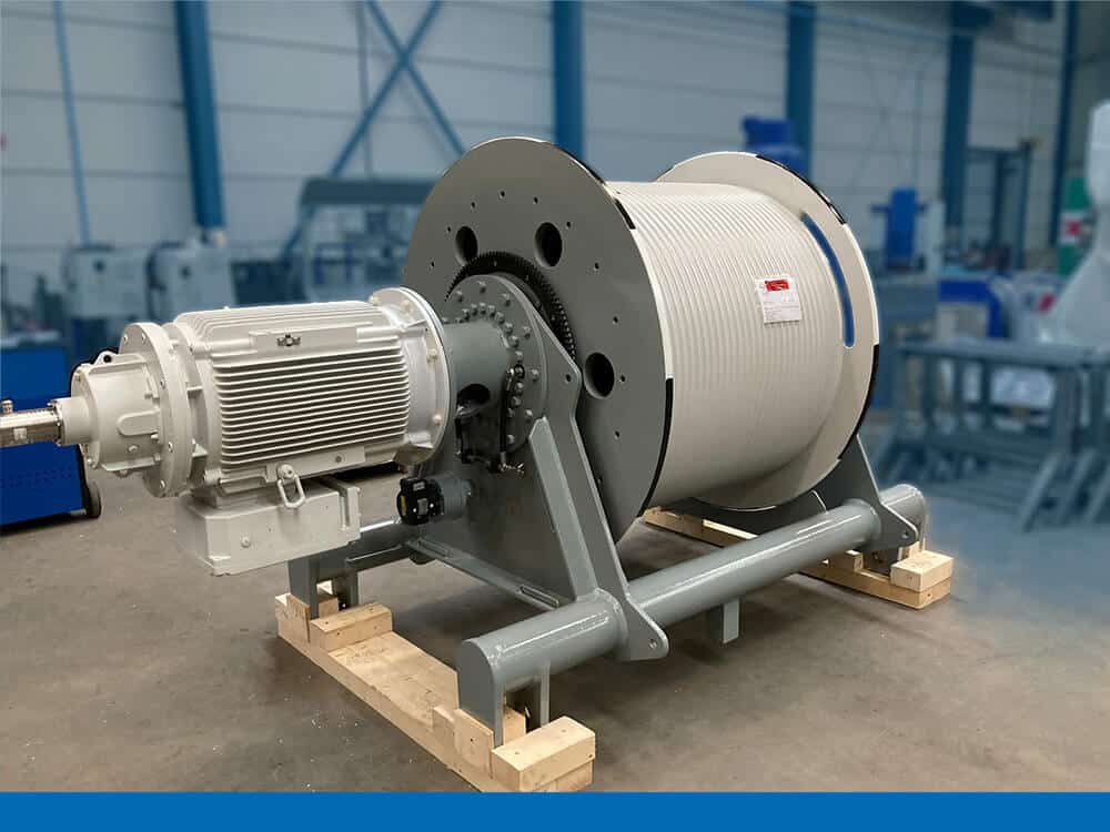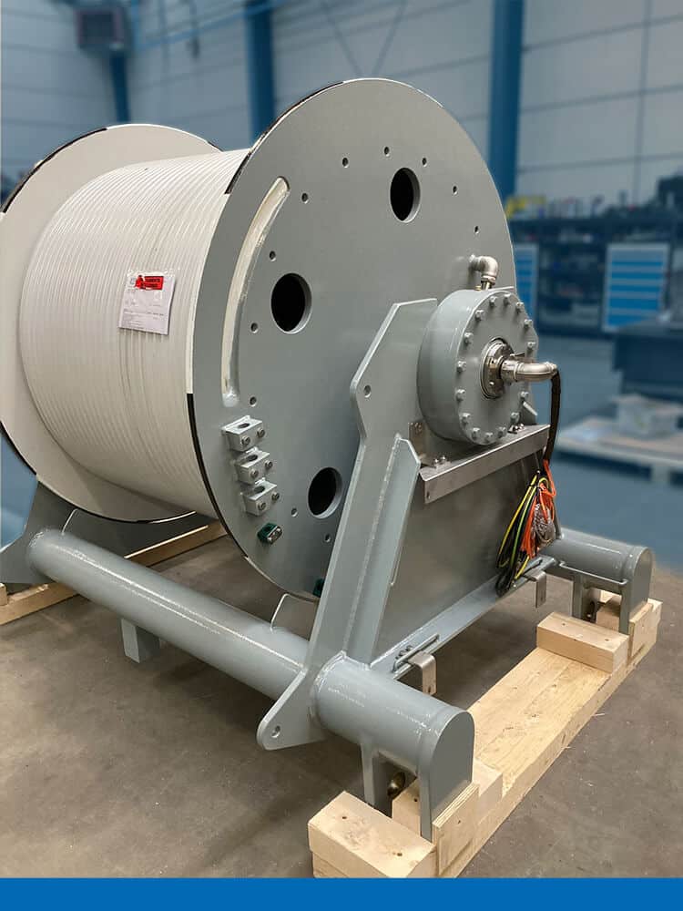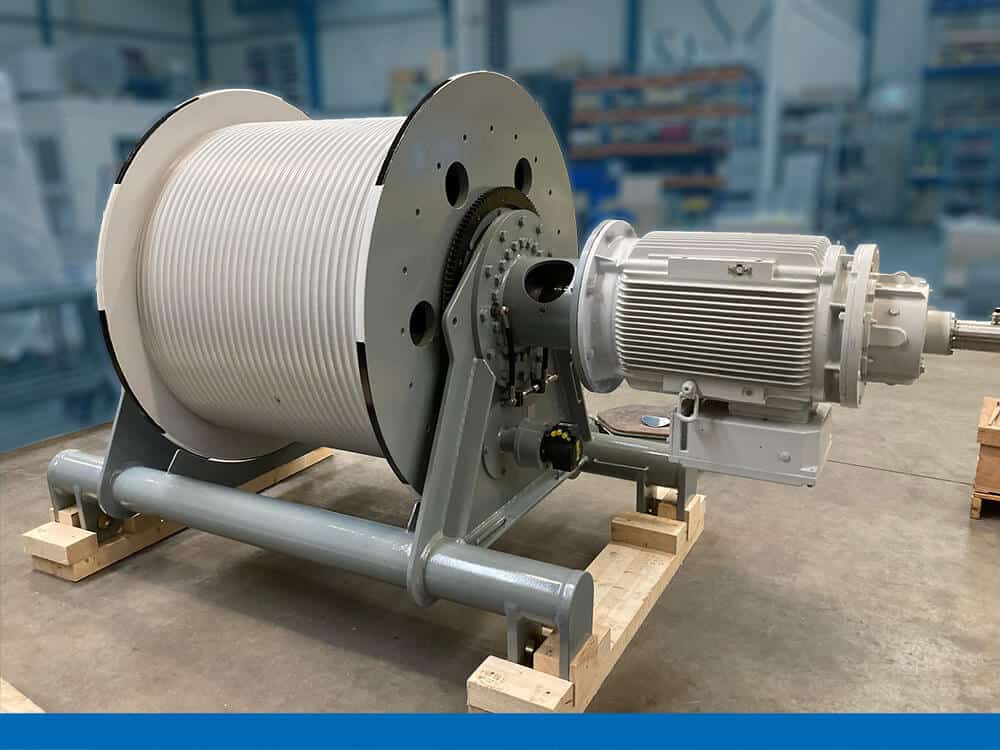 Not long ago we have shipped a beautiful umbilical winch with a pulling load of 66kN which will be used on a leg encircling crane on a huge windmill installation vessel. Together with a local partner the complex winch, with very demanding details, was engineered,built and tested in The Netherlands.