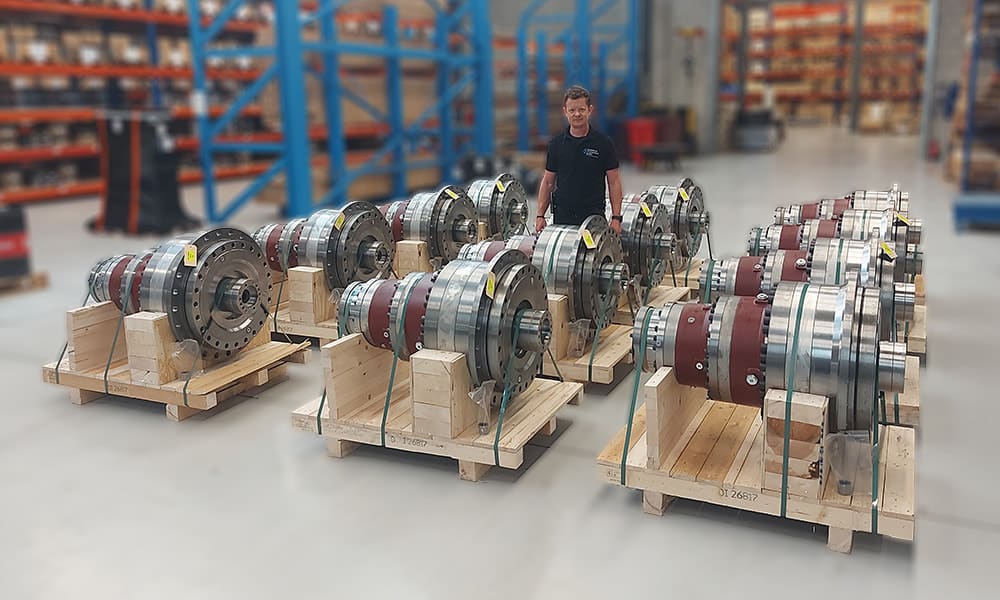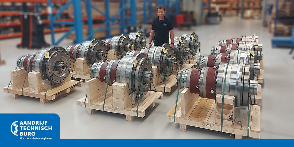 Aandrijf Technisch Buro is proud to supply 12 planetary winch gearboxes, type WD-16004 with a maximum output torque of 317.000Nm. These beautiful gearboxes will be placed inside the drum of handling winches with a lifting capacity of 22,5 tons.